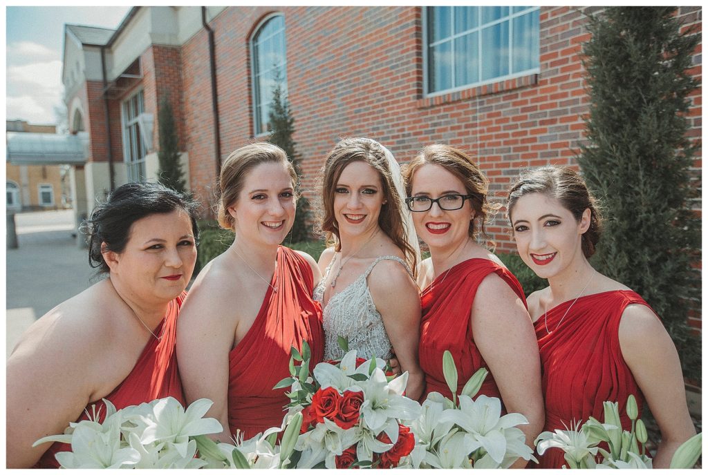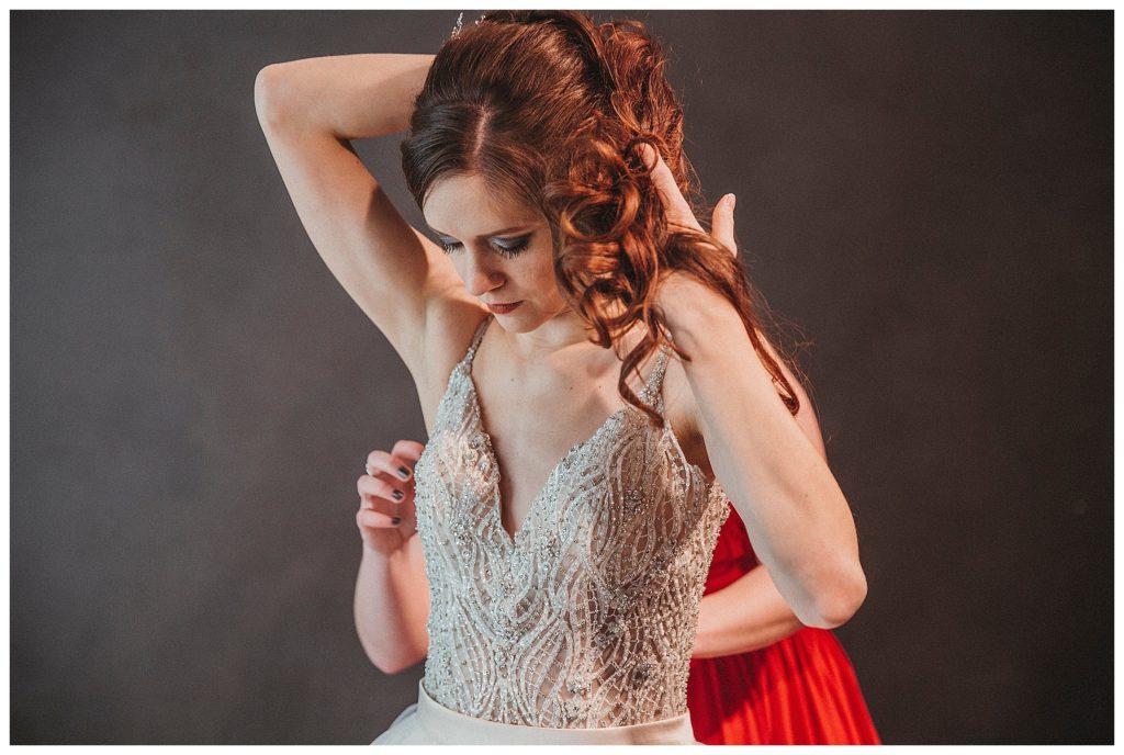 The day started out capturing images of everyone getting ready and all the details we could wrangle up. Sarah had the most gorgeous dress, that I’m pretty sure we all drooled over. And those heels!!! I’m still in awe over how she managed to wear them all day. They were sooooo tall! One bridesmaid helped Sarah get dressed, while the others got to do a first look. It was pretty awesome.