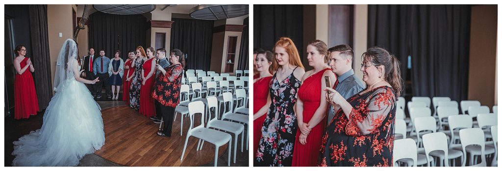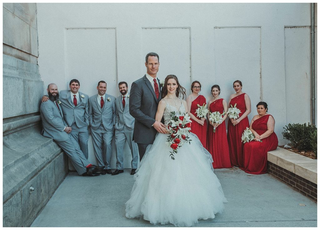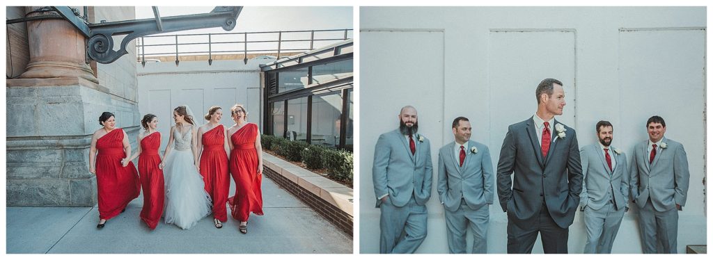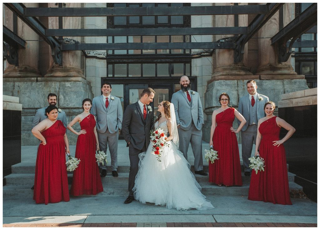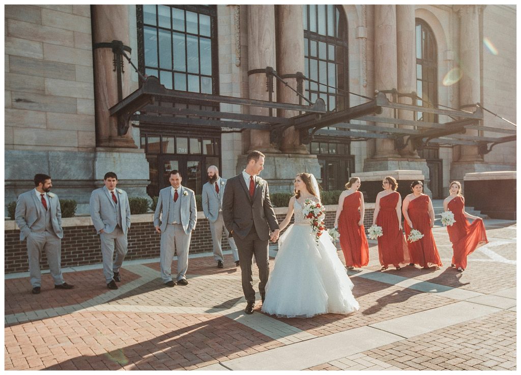 The Ceremony took place inside the venue with all the natural light pouring in. We did their separate formals outside before without them seeing each other. Then we took them to Union Station right after the ceremony to capture them together and with their bridal party. They were indeed an awesome bunch to work with.