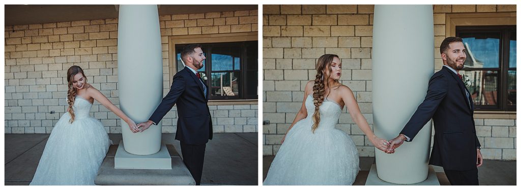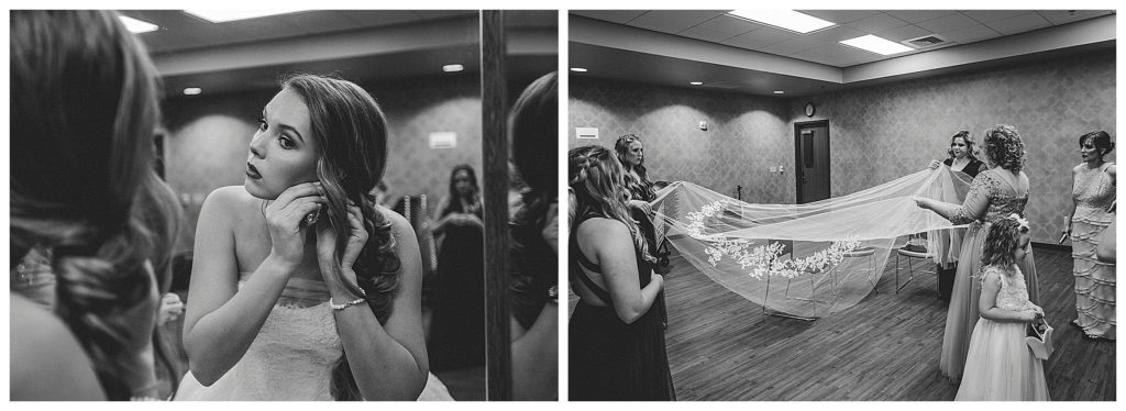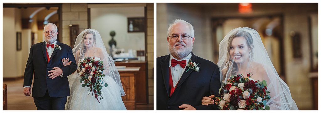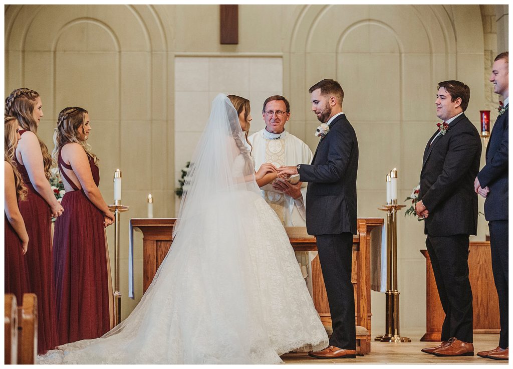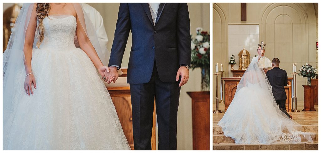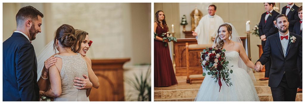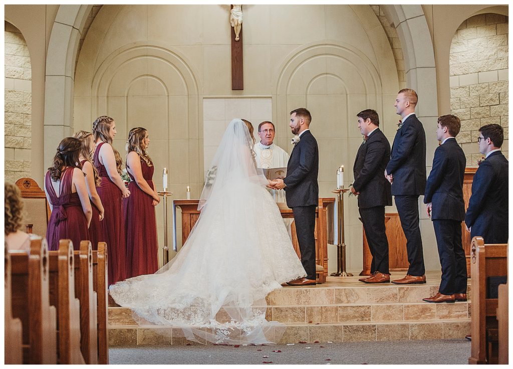 Sarah and Conner got married at St. Catherine of Siena in west Wichita on October 27th, 2018. We had the most gorgeous fall day, when the weather had been super cold and rainy the week before. The wedding started out at the church were the bridal party got ready. Sarah and Conner decided on not seeing each other before the ceremony, but wanted to hold hands and say hi to ease some nerves.