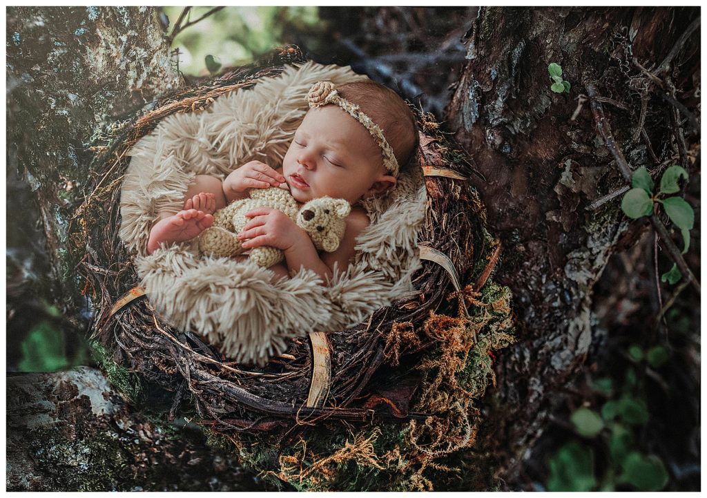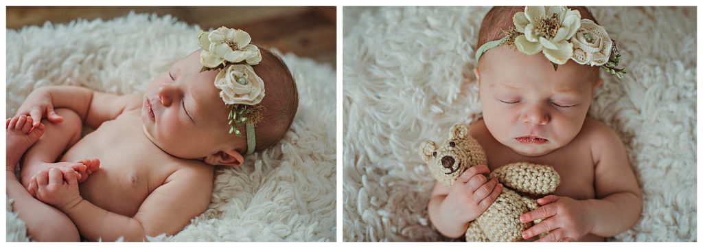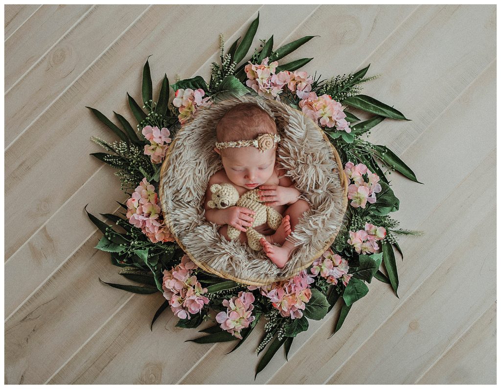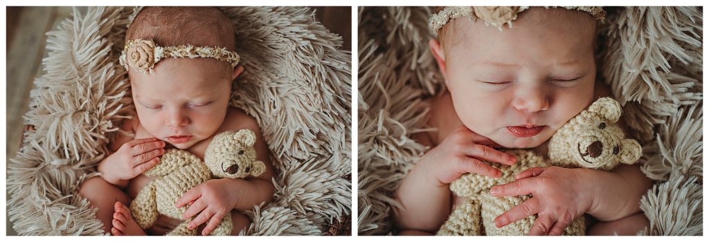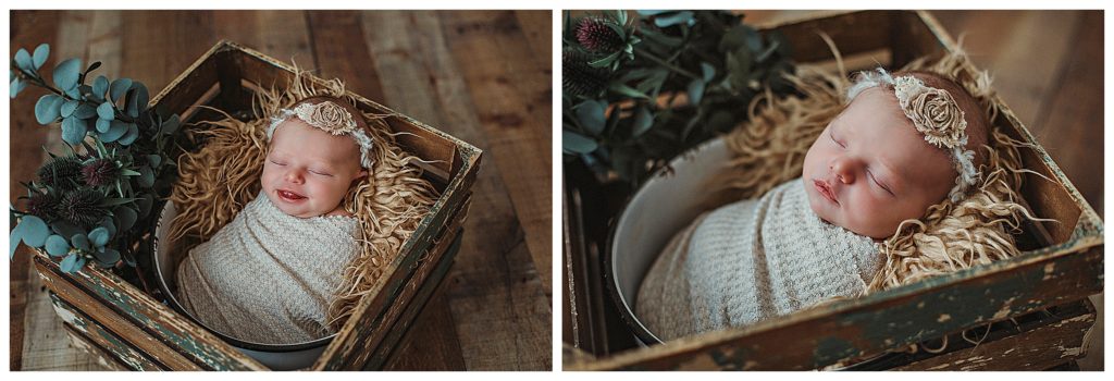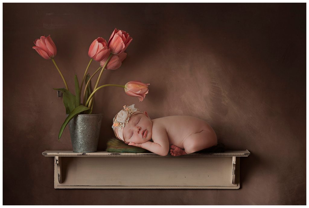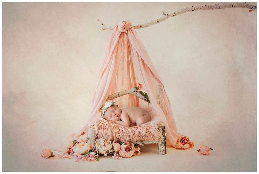Little Estelle was an angel and slept her entire session. She was a dream!!! When I have a baby totally milk drunk, I’m in heaven! This means, more time to change baby, and move on to another pose and prop. More verity!! This doesn’t mean every baby will cooperate as well as this little one did. Some babies are colic due to tummy pain, or just have a hard time settling. I’ve had some babies not really interested at all in sleeping during their session. This makes mommas worried about photos not turning out how they would like. But I can reassure you that no matter the situation, we will get some great photos. I do lots of composites, like you will see below, that are created from just a few poses. I can create multiple images, a verity of different set ups, that will make you feel like we got so much more. It’s a total win!