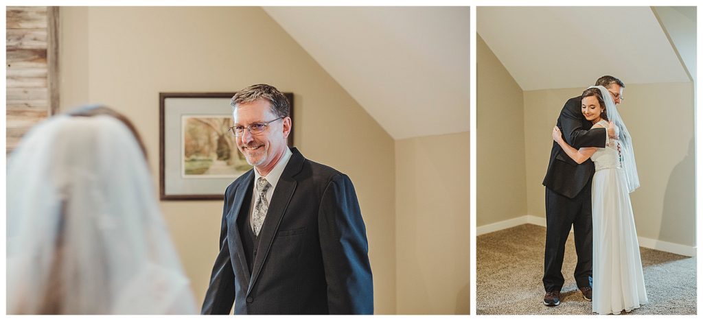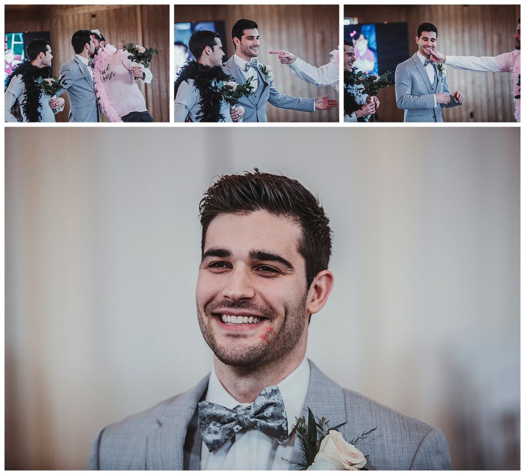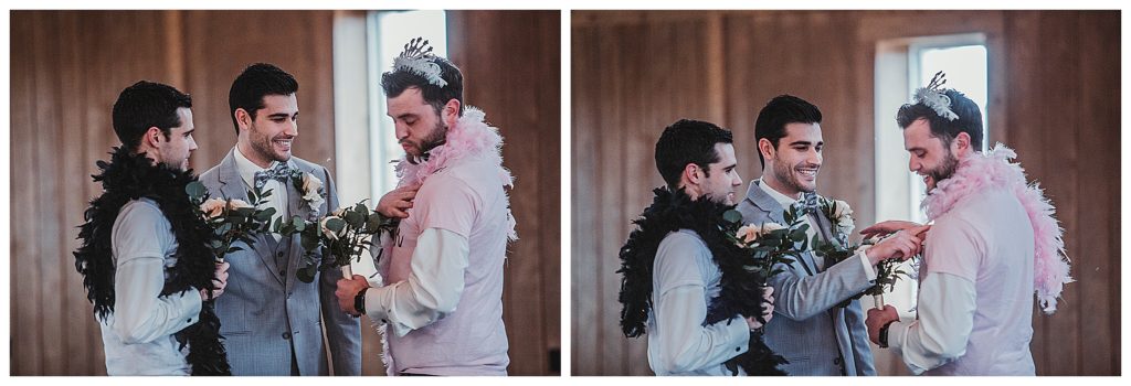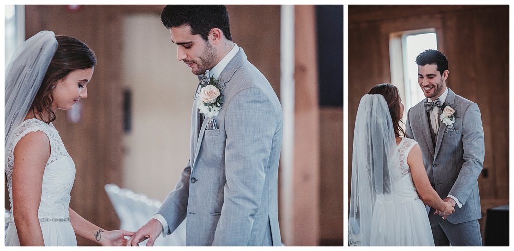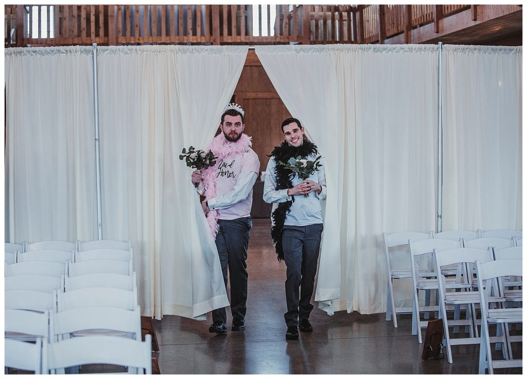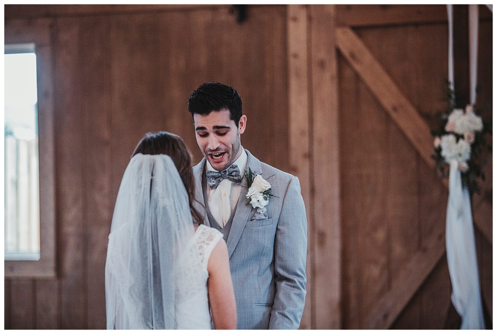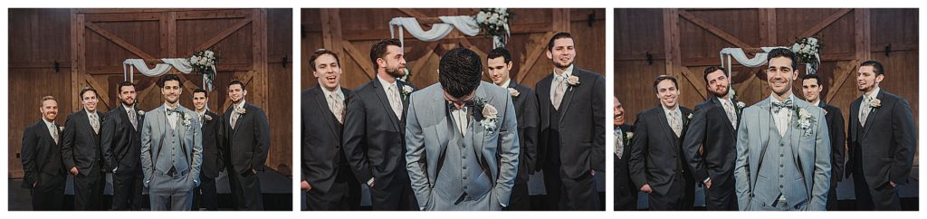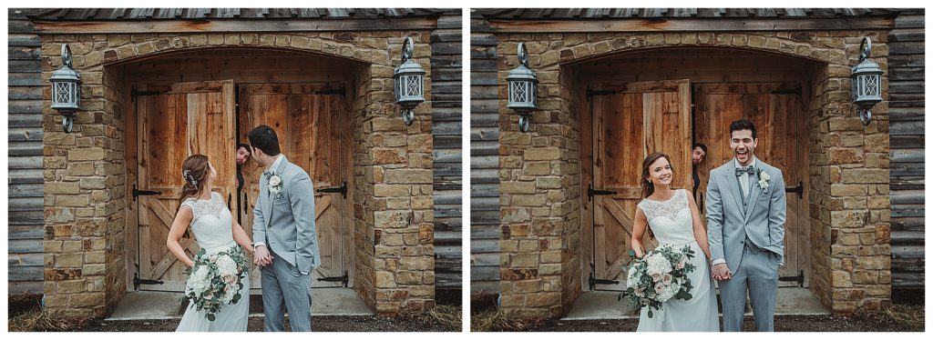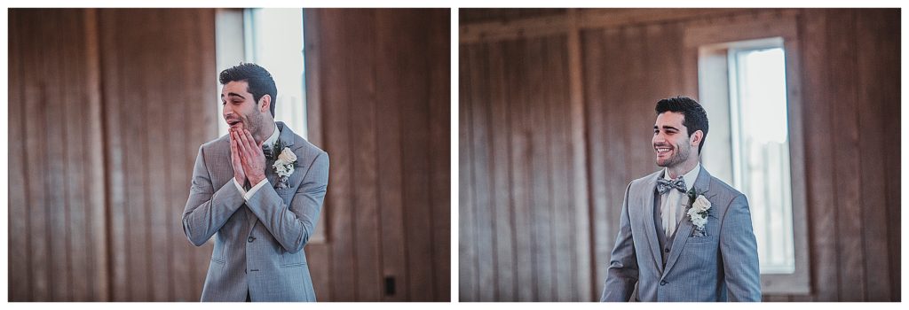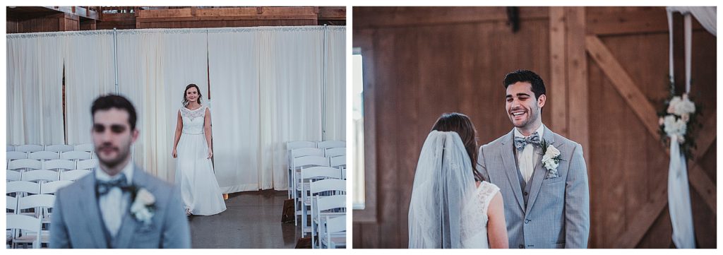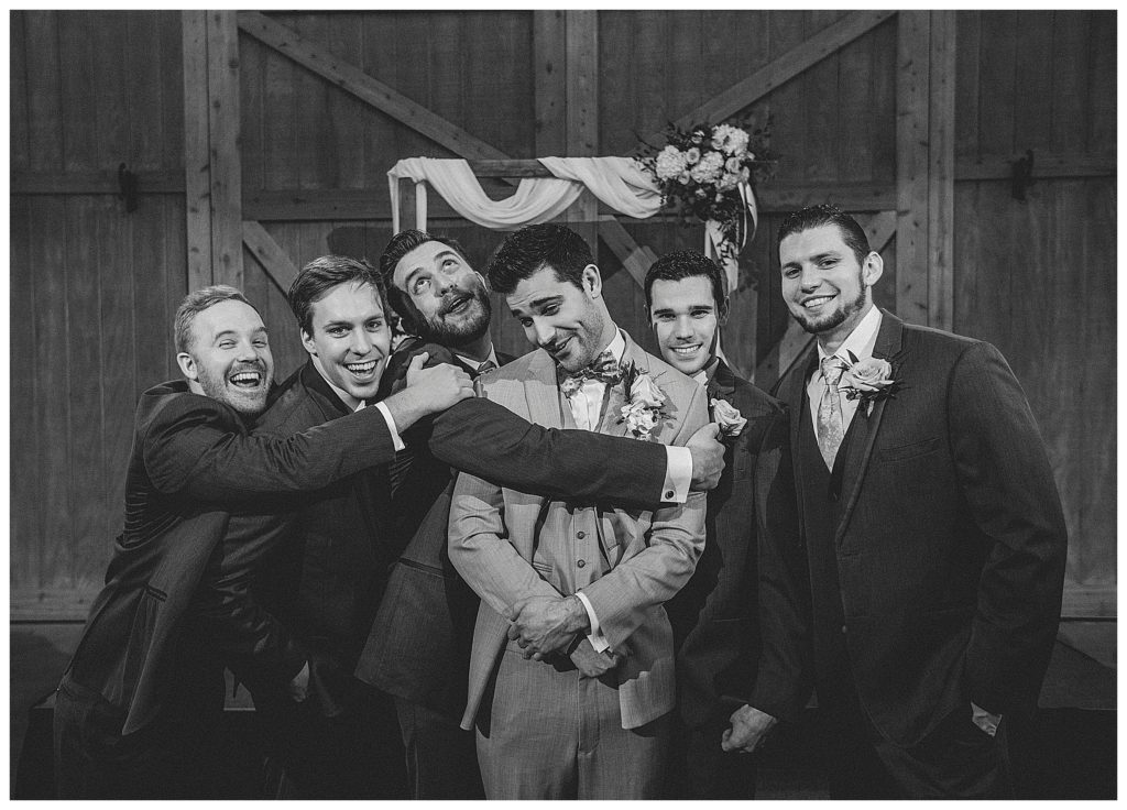 Bryanna and Connor both got ready with their bridal party in the guest house next door. After a very touching first look with her dad, we were ready for the couples first look in the barn. The bridesmaids warned me that there would be a surprise first look with the two best men dressed up and that Connor had no idea. This ended up being hilarious, and totally set the mood for the rest of the day. We let Connor regroup after such a fun moment with his boys, and got him repositioned for his special moment with his love.