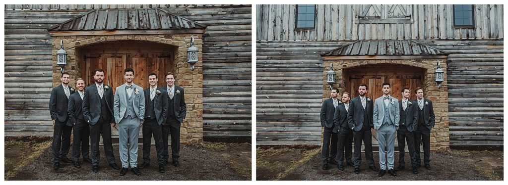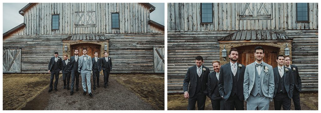 We then started into formals, getting most of them done inside. Everyone braved the cold temps for a few moments as we rushed outside in the damp breeze for some fun shots in front of the barn. The stormy clouds made for a gorgeous backdrop, and the earthy tones gave a warmness to a rather cold day.