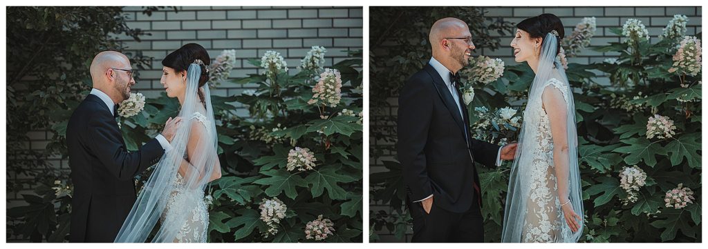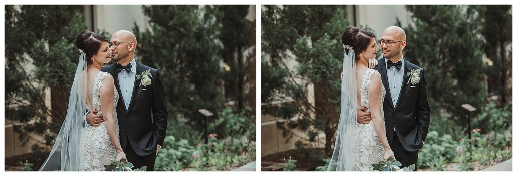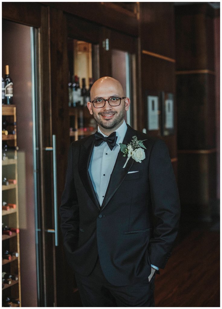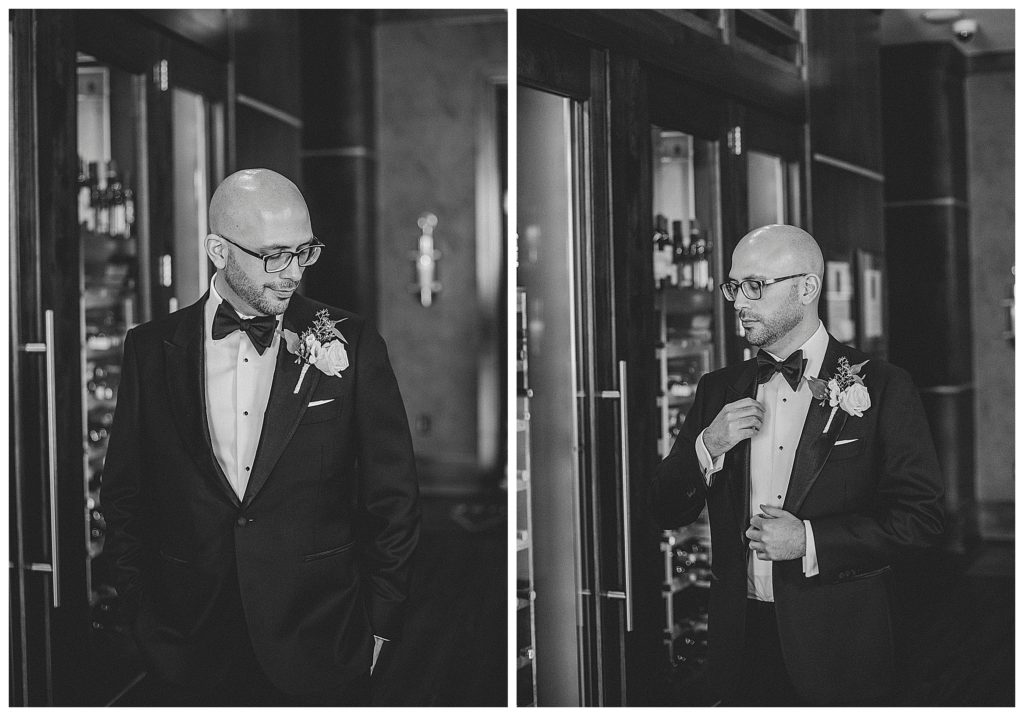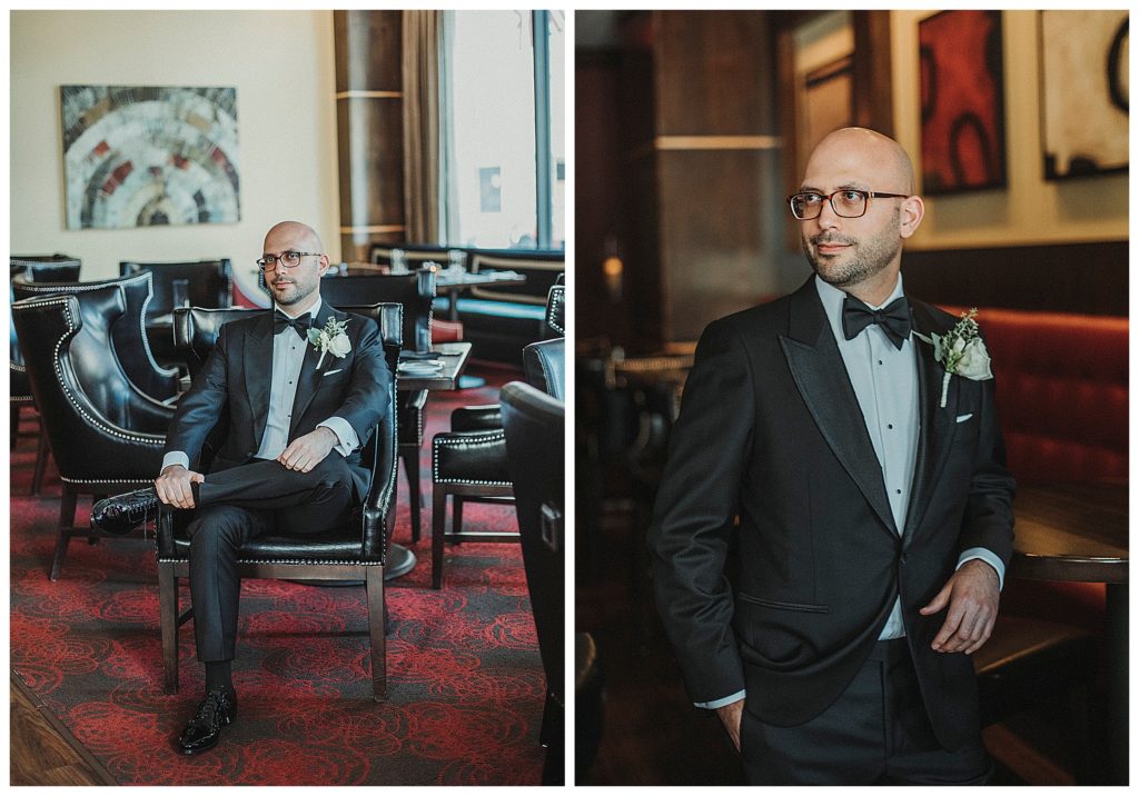 These two gorgeous humans were super easy to work with. We ran a bit behind in the morning getting to portraits, but as soon as we started, the flow was natural. Since time was not on our side, I quickly did their first look outside the Ambassador Hotel where Jennie got ready. We did some portraits of Julen in the bar with the wine cooler, which turned out pretty dapper. Because I loved the location so much, and I felt it went towards the style of the