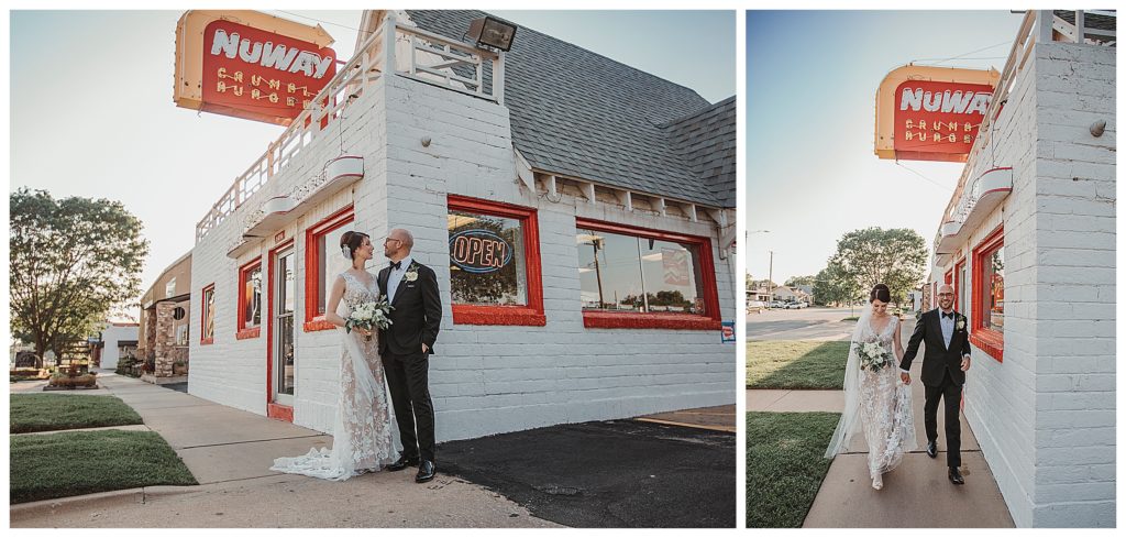 After the vows, they fled to the car with a quick exit for some more fun photos at NewWay. What’s really cool about this, is that Jennie’s grandparents ate at this very one right after their wedding. They did again on their 50th wedding anniversary and NewWay has the photo on their wall to prove it!