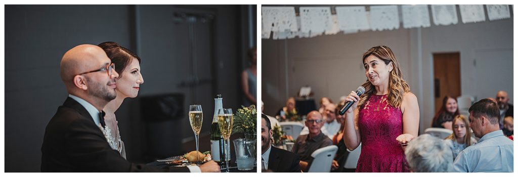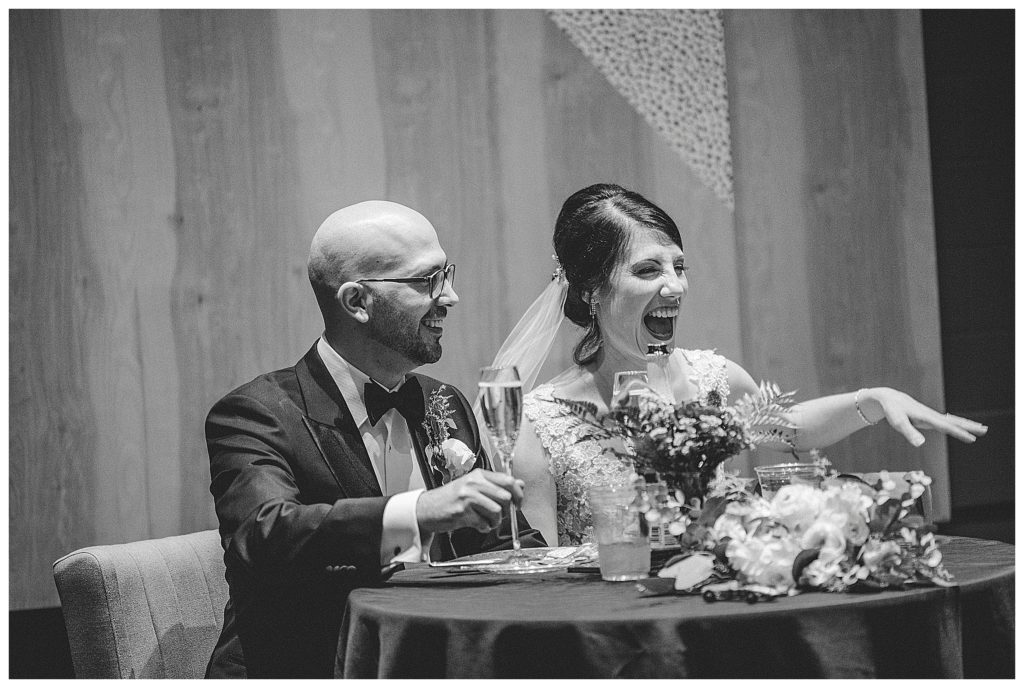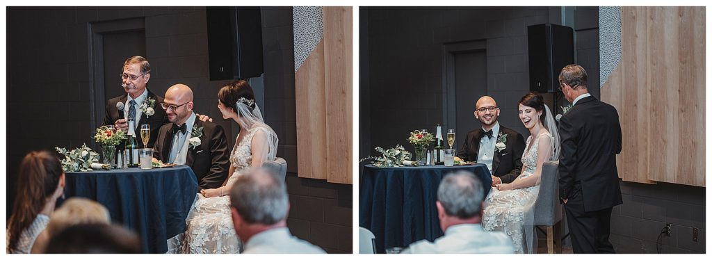 We came back for the couple’s reception entrance with all their loved ones waiting to celebrate. They had toasts from several friends and family with the most beautiful words to say about the couple. You could see the happiness and love around the room. There were many tears and lots of laughter.